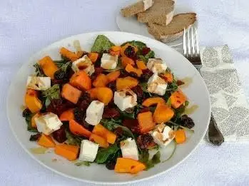 Lauwarmer Kürbissalat mit roten Rüben und Ziegenfrischkäse