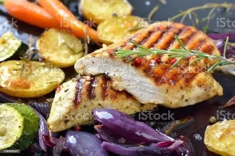 Gebratene Hühnerbrust mit Ofengemüse