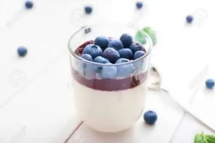 Weißes Mousse mit Heidelbeeren