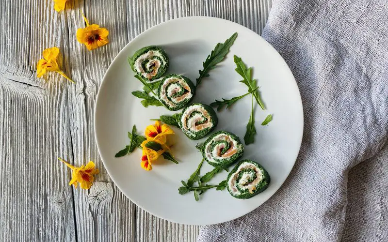 Spinatrolle mit Räucherlachs und Krengervais
